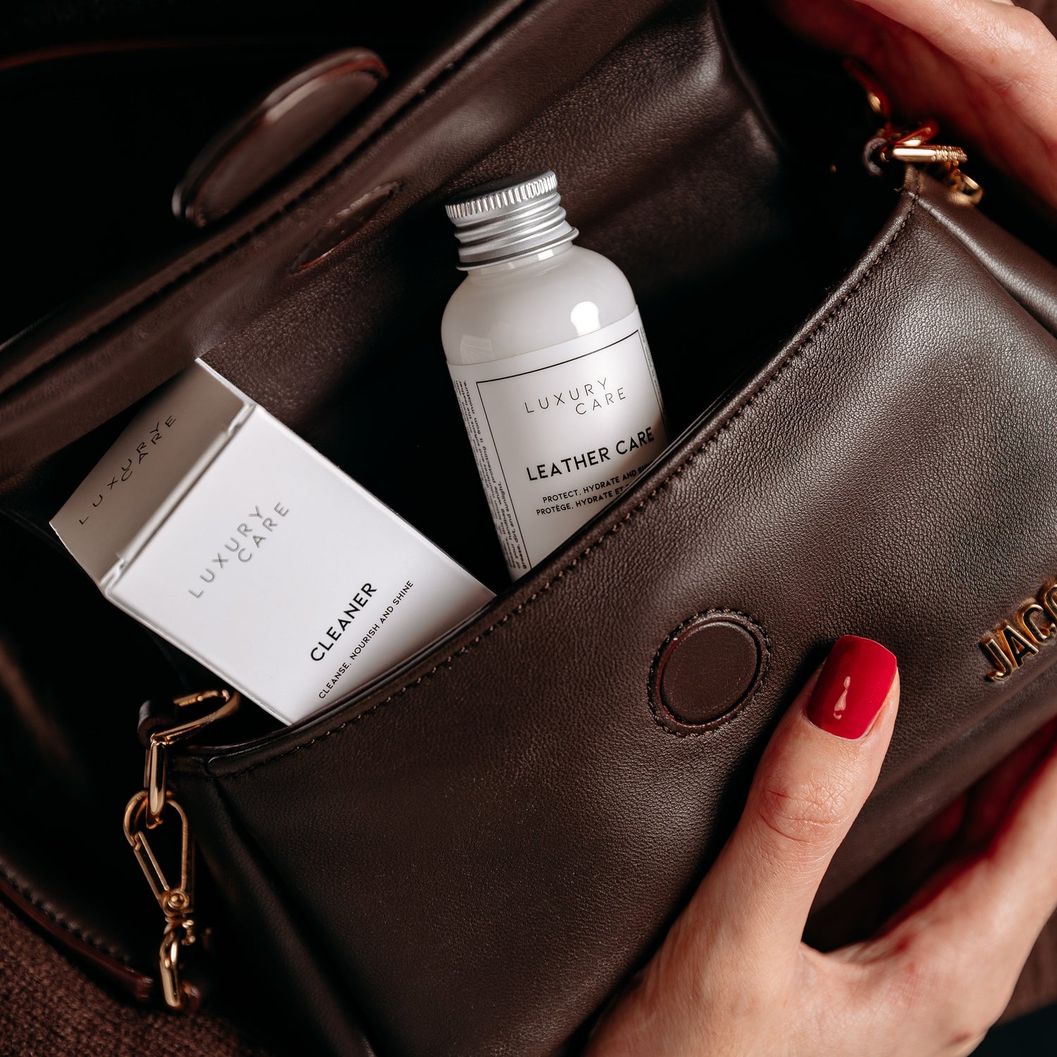 Whether you've just adopted a new bag or you're looking to give your faithful companion a new shine,Luxury Care offers three essential products to pamper your leather bags: a gentle cleanser, a protective cream and a waterproofing agent.