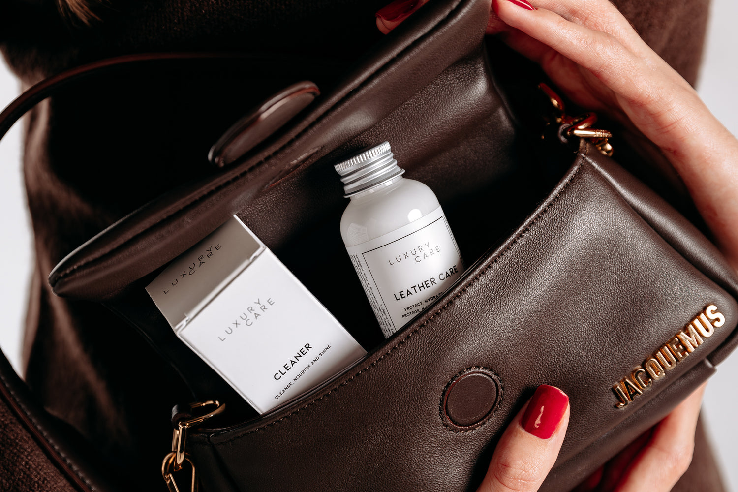 Aujourd’hui, Luxury Care, c’est trois produits simples et indispensables : un nettoyant doux, une crème nourrissante et un imperméabilisant. Que vous veniez de craquer pour un sac neuf ou que vous cherchiez à redonner vie à votre bon vieux compagnon, vous êtes au bon endroit !