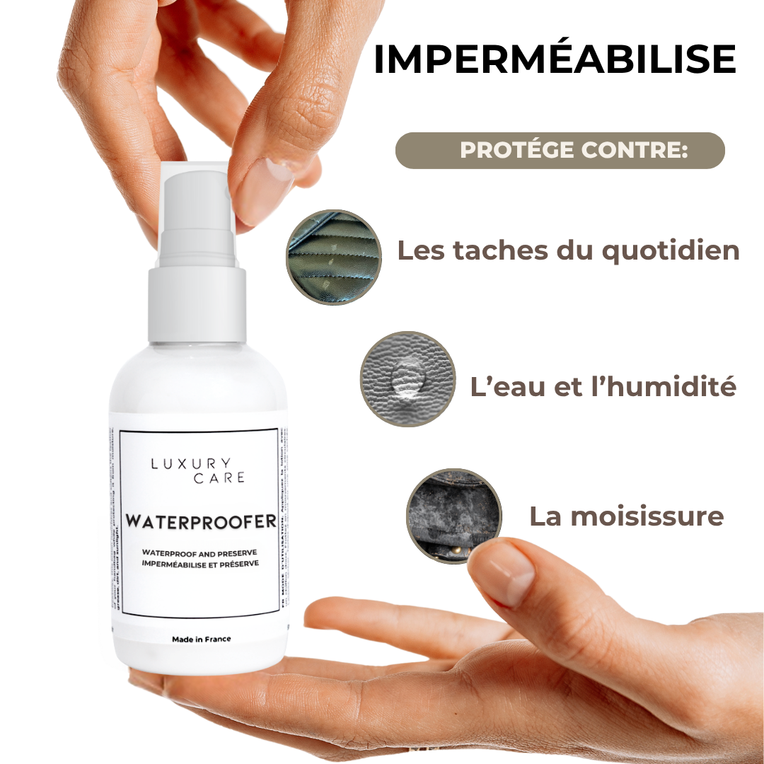 - WATERPROOFER : Agent protecteur à base d’eau enrichi en huile nourrissante.